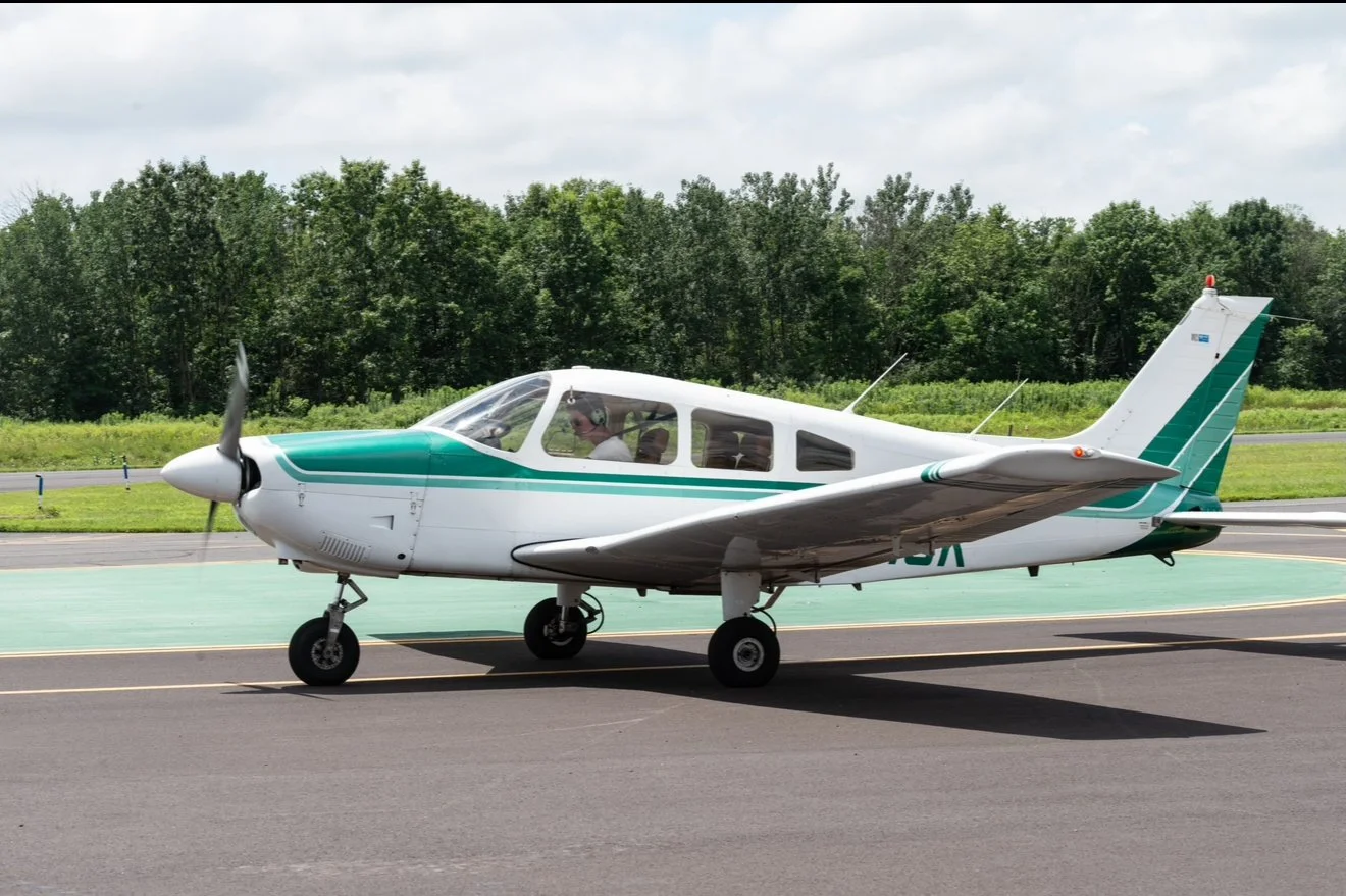 This PA-28-181 is a single-engine 4 seater aircraft with a low wing, fixed landing gear and steam gauges or ‘‘six pack’’.